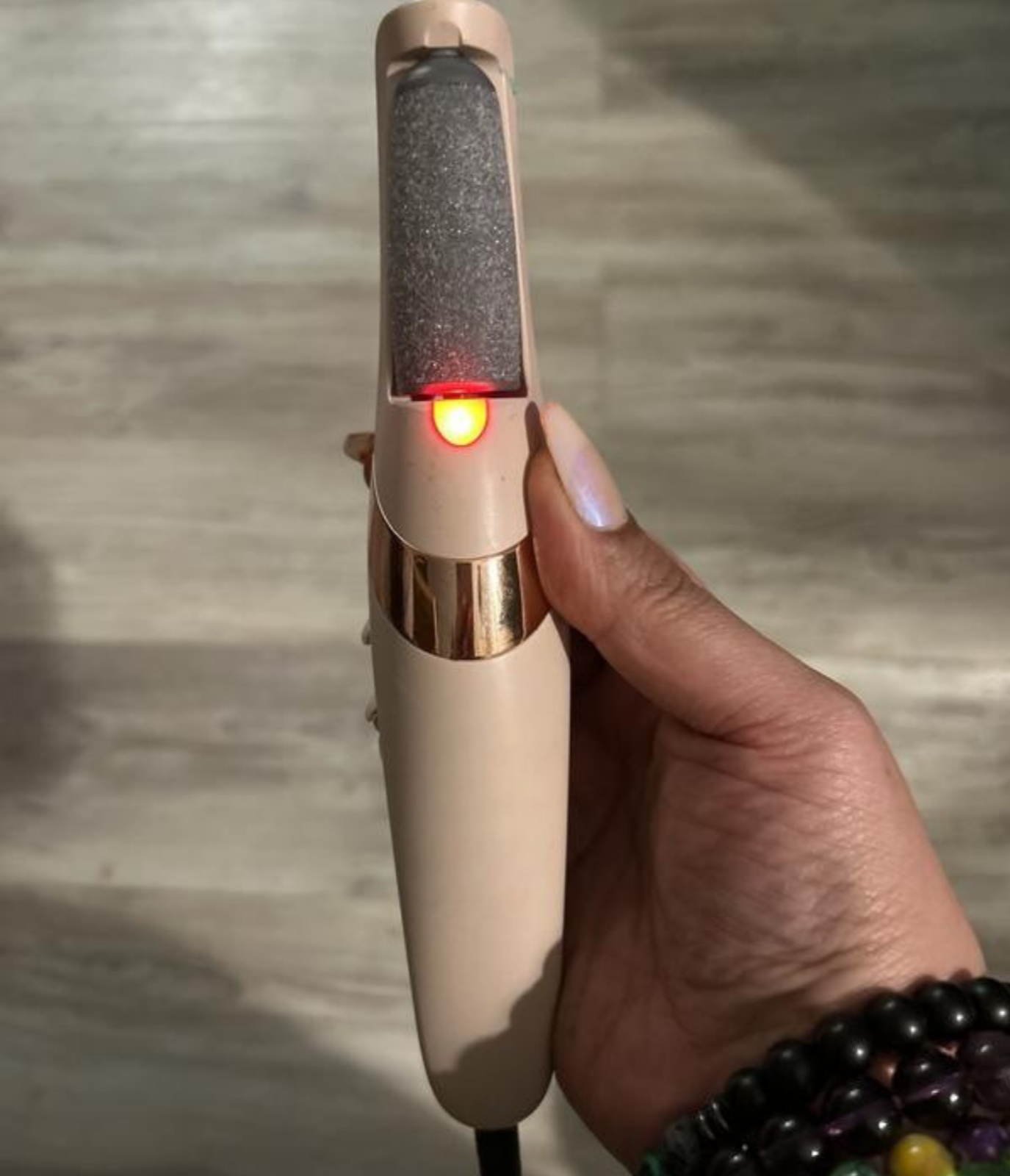 L’appareil est rechargeable et offre jusqu’à 90 minutes d’utilisation continue, soit plusieurs séances de pédicure avec une seule charge.