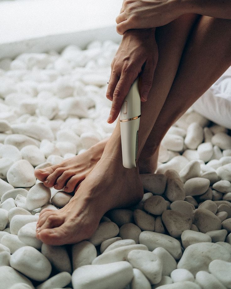 - En passant doucement le roller sur vos talons ou zones rugueuses, il exfolie et enlève les callosités et la peau morte.